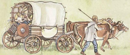 “It is a common characteristic of all the peoples in this part of the world that they migrate with ease, because of the meagerness of their livelihood and because they do not till the soil or even store up food, but live in small huts that are merely temporary structures; and they live for the most part off their flocks, as the Nomads do, so that, in imitation of the Nomads, they load their household belongings on their wagons and with their beasts turn whithersoever they think best.”