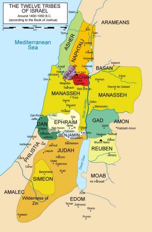 After the 10 plagues, the Pharaoh let the people of Israel go to the promised land of Canaan around the year 1450 BC. After 40 years of wandering in the desert, the Israelites reached the land of Canaan. Under the leadership of Joshua, they defeated the Canaanite peoples and took possession of the land. Each tribe (except the Levites) was given its own territory, whereby Joseph’s territory was divided between his two sons, Ephraim and Manasseh.